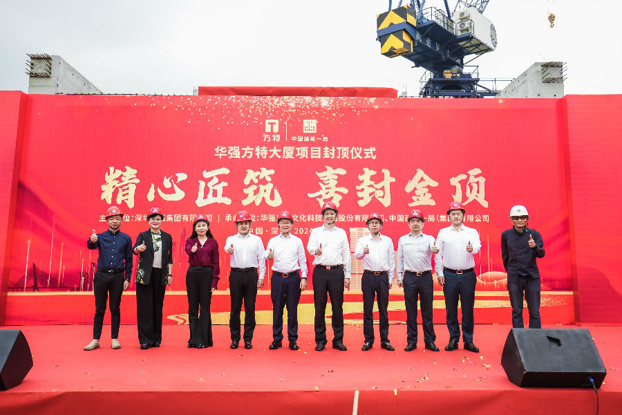華強集(ji)團(tuan)董(dong)事(shi),華強方(fang)特集(ji)團(tuan)董(dong)事(shi)長、總(zong)裁(cai)劉道(dao)強,華強集(ji)團(tuan)副總(zong)裁(cai)陸培康(kang),華強方(fang)特集(ji)團(tuan)執行總(zong)裁(cai)陳輝軍、尚(shang)琳琳、頓忠(zhong)杰等領導也出席了封(feng)頂(ding)儀(yi)式。
