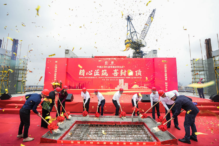 4月8日上(shang)午,華(hua)強方(fang)特(te)大廈(sha)封(feng)頂(ding)儀式(shi)隆重舉(ju)行(xing)。華(hua)強集(ji)團、華(hua)強方(fang)特(te)集(ji)團領導及總包(bao)、監(jian)理單位有關負責人出(chu)席了封(feng)頂(ding)儀式(shi)。